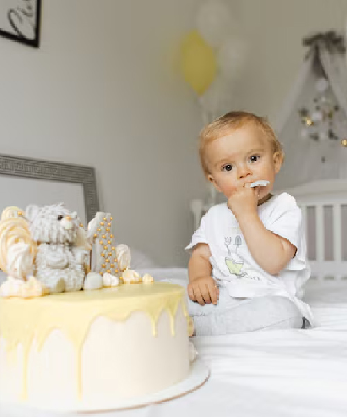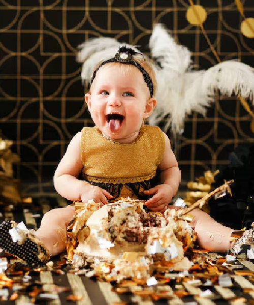 A Cake Smash Shoot is a fun way to celebrate your baby’s first birthday. Babies enjoy smashing the cake while photographers capture adorable and joyful moments.